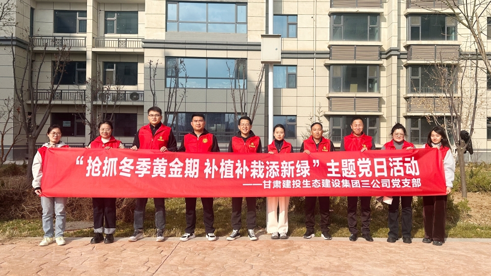 為進(jìn)一步踐行習(xí)近平生態(tài)文明思想,搶抓冬季補(bǔ)種黃金期。近日,生態(tài)三公司黨支部組織全體黨員、團(tuán)員青年在蘭州新區(qū)瑞嶺名郡項(xiàng)目開(kāi)展“搶抓冬季黃金期 補(bǔ)植補(bǔ)栽添新綠”主題黨日活動(dòng),牢固樹(shù)立“增綠就是增優(yōu)勢(shì),植樹(shù)就是植未來(lái)”生態(tài)理念。